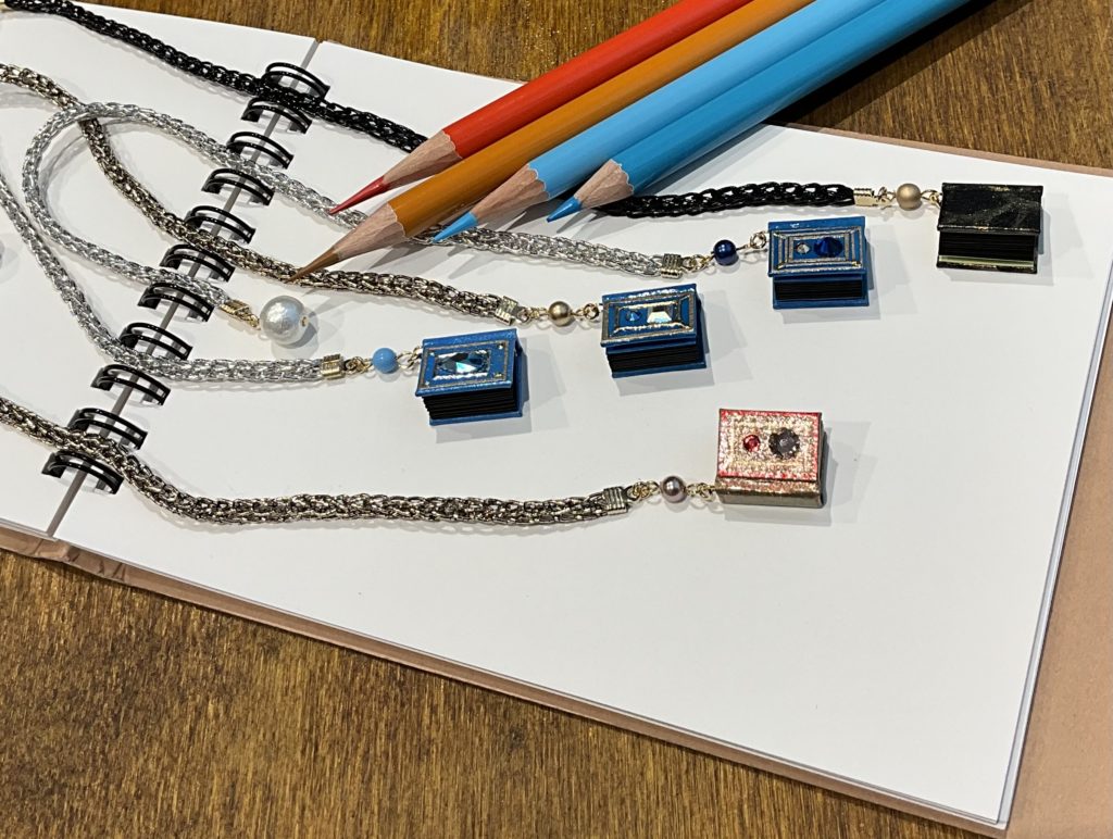小さなサイズの豆本を使ったアクセサリーです。