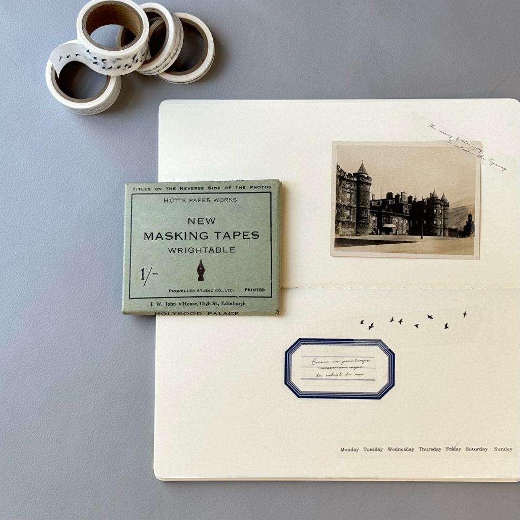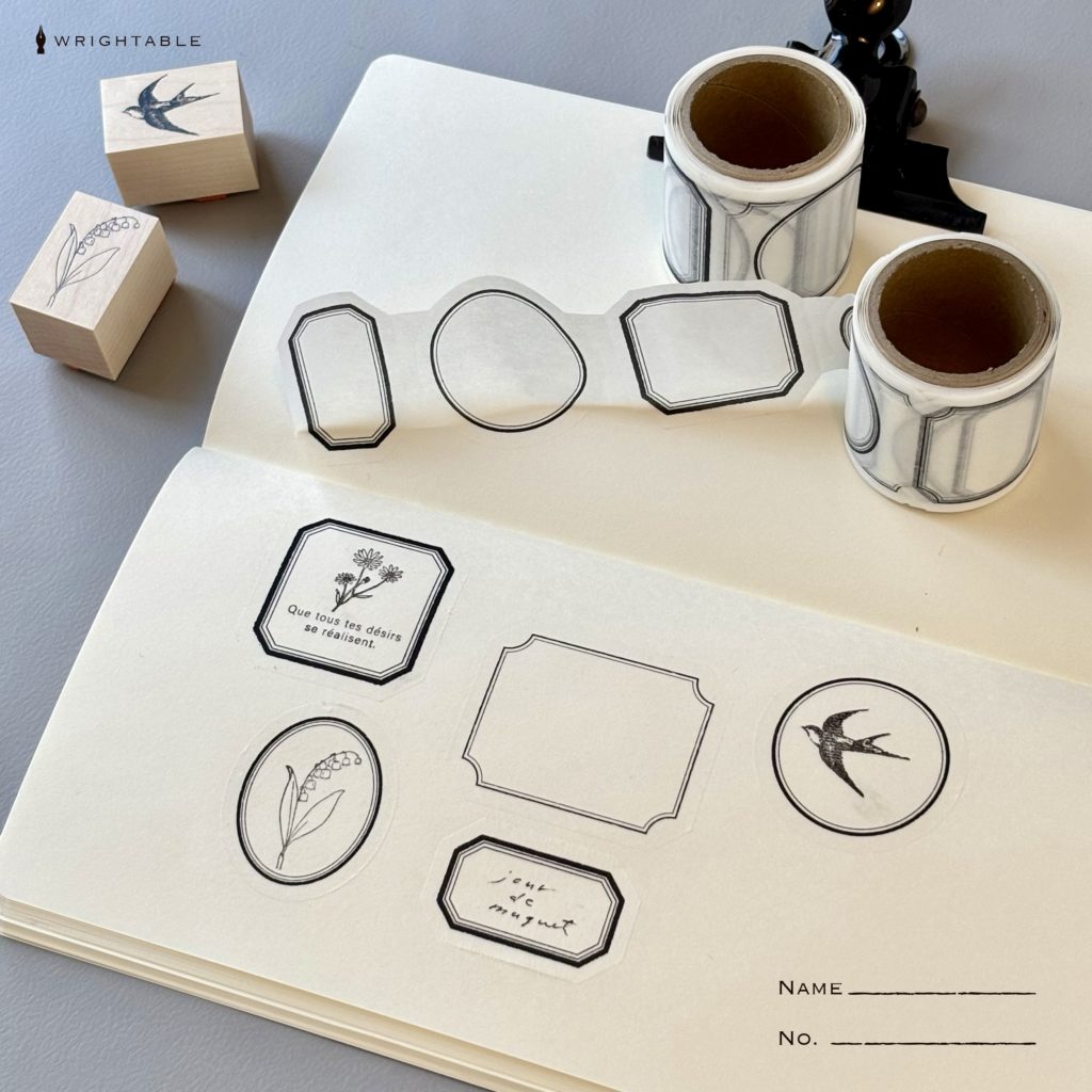 モノトーンのシックなデザインに仕上げたマスキングテープは手紙やラッピング、手帳コラージュにおすすめです。