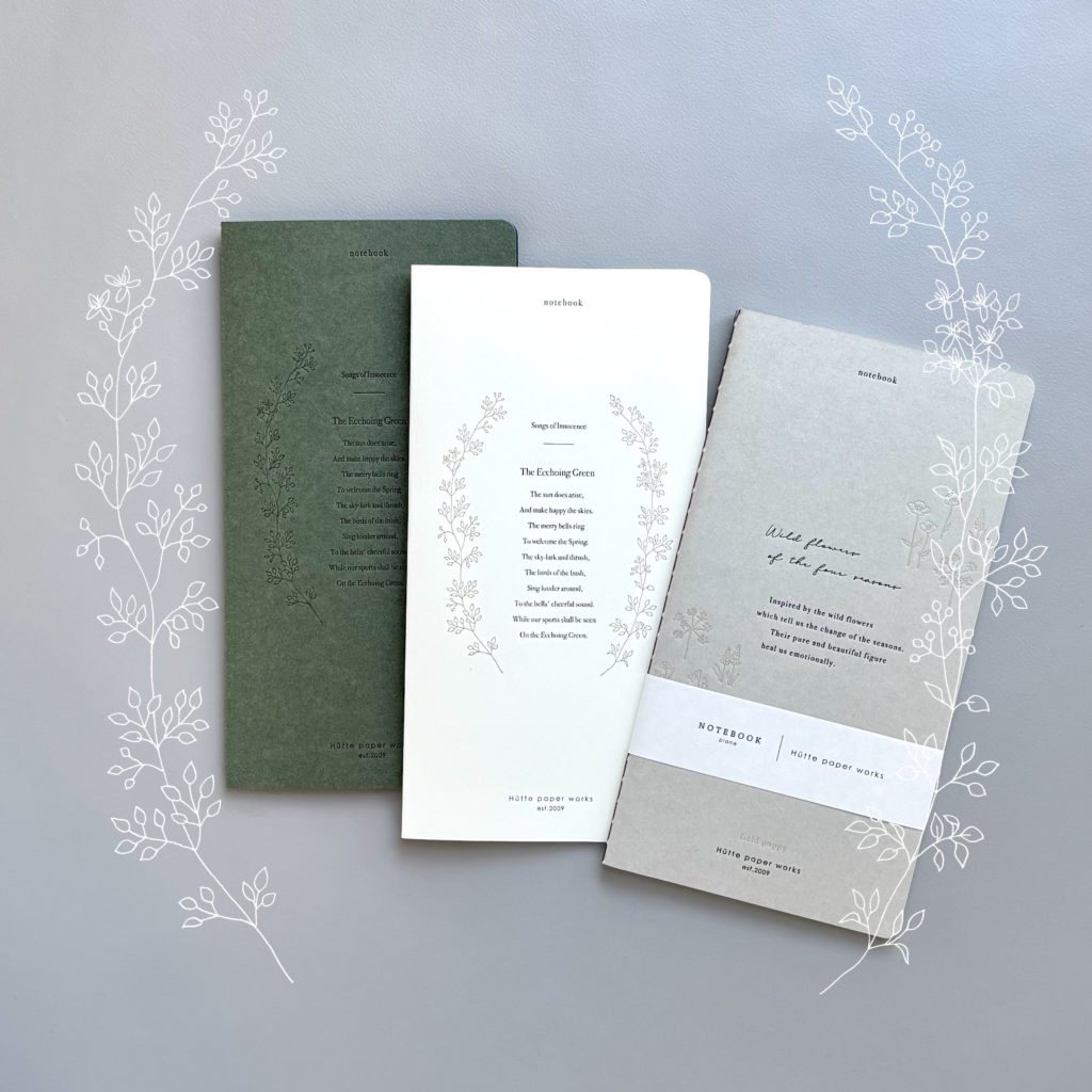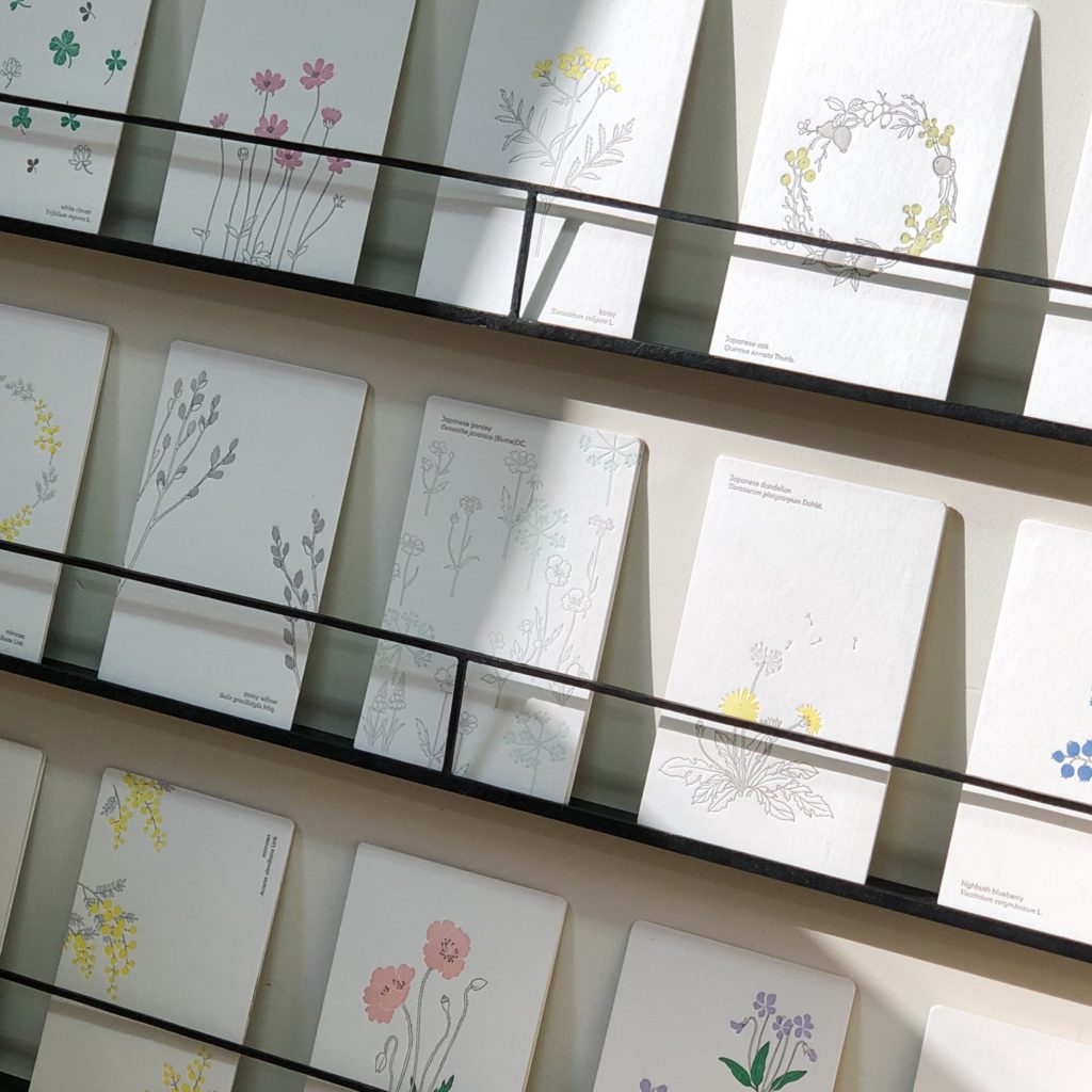 季節折々の植物イラストを手触りの良い紙に活版印刷で仕上げています。