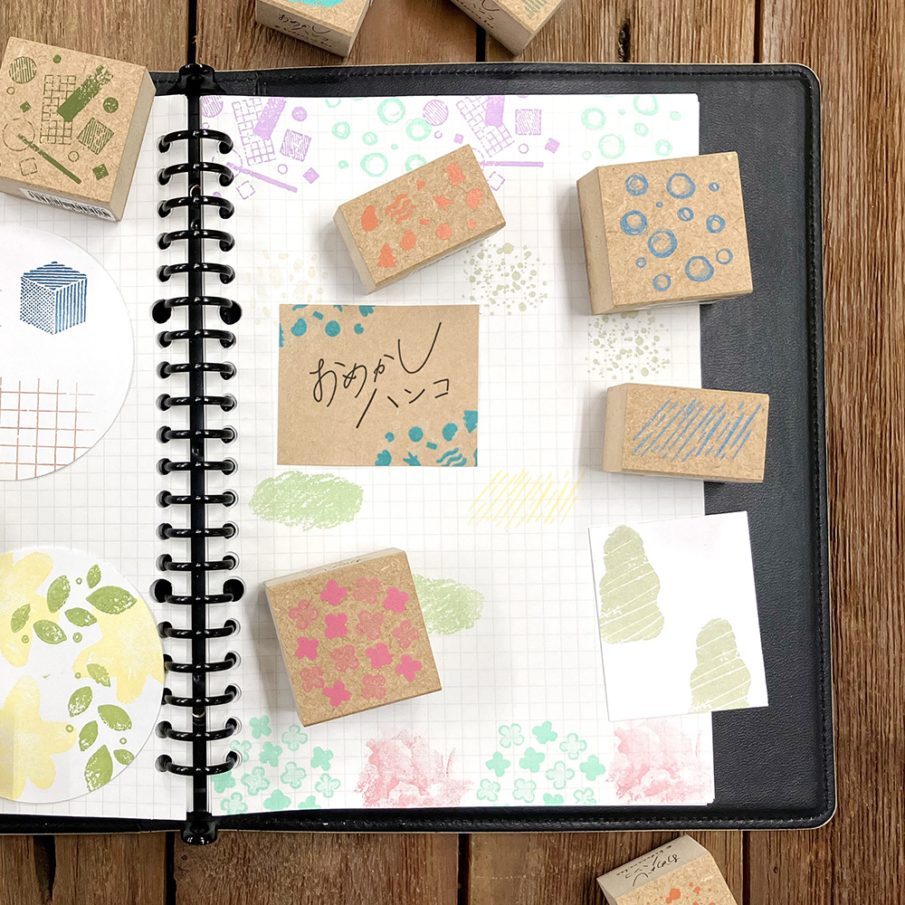 ノートや手帳を彩る、おめかしハンコ。ノートや手帳のふちを可愛くデコーションしたり、淡い色でページの下地に押して手帳づくりを楽しもう。