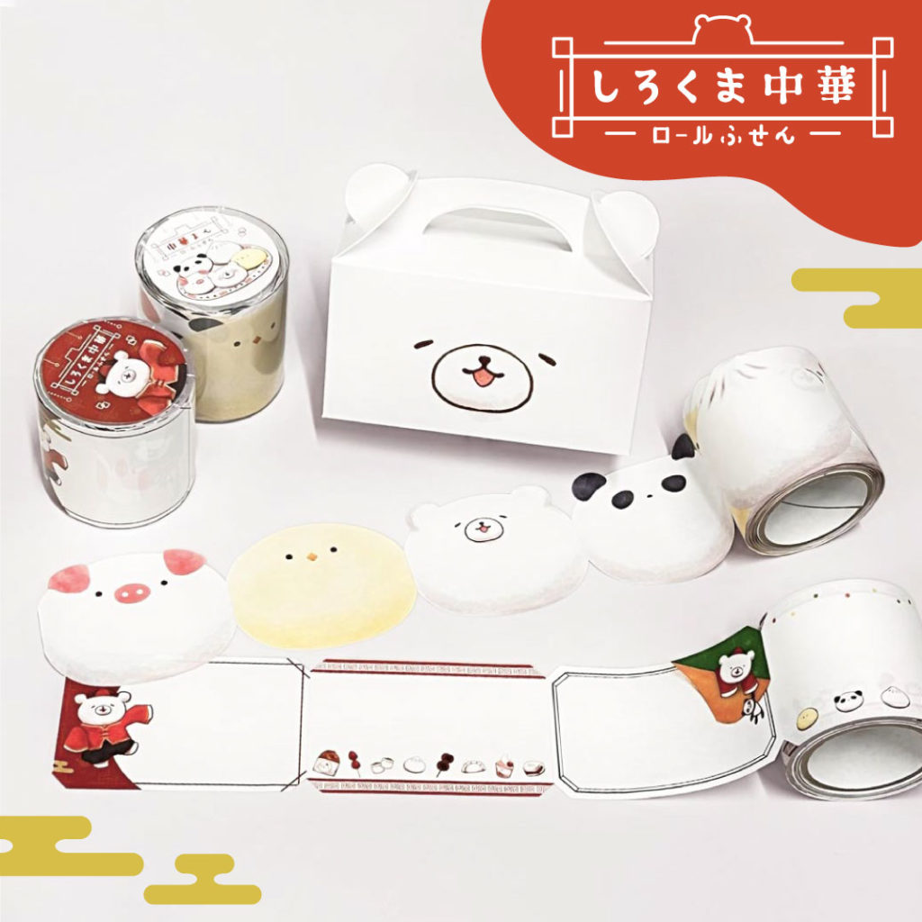 しろくま中華シリーズのロールふせん2柄をセットにしてしろくまくん型BOXに詰め合わせました。