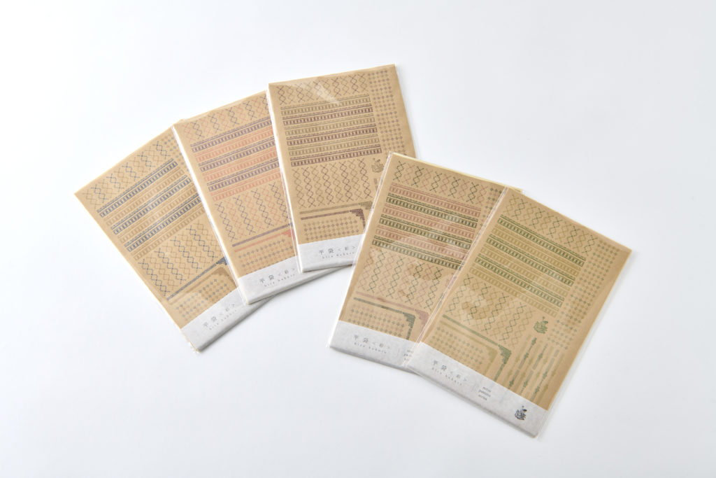 明治時代のレトロな柄を総柄にして、ラフな薄手クラフト紙に活版印刷し、平袋にしました。活版印刷のため、触れると独特の凹凸が感じられます。選べる5色展開、薄手で扱いやすく、ちょっとした贈り物やラッピングに最適です。ポストカードや弊所別売りの「雑記帳」のラッピングにもぴったり。普段使いに、特別な日のラッピングに。明治時代の美しさと現代の機能性を兼ね備えたこのアイテムを、ぜひ手に取ってみてください。