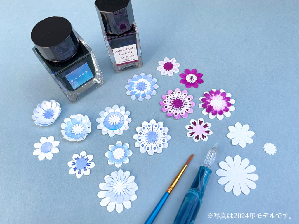 お持ちのインクや絵の具などで紙の花を好きな色に染めて、リース状のカレンダーにできるキットです。カレンダーとして1年使ったあとは、リースやフォトフレームとして飾ることができます。