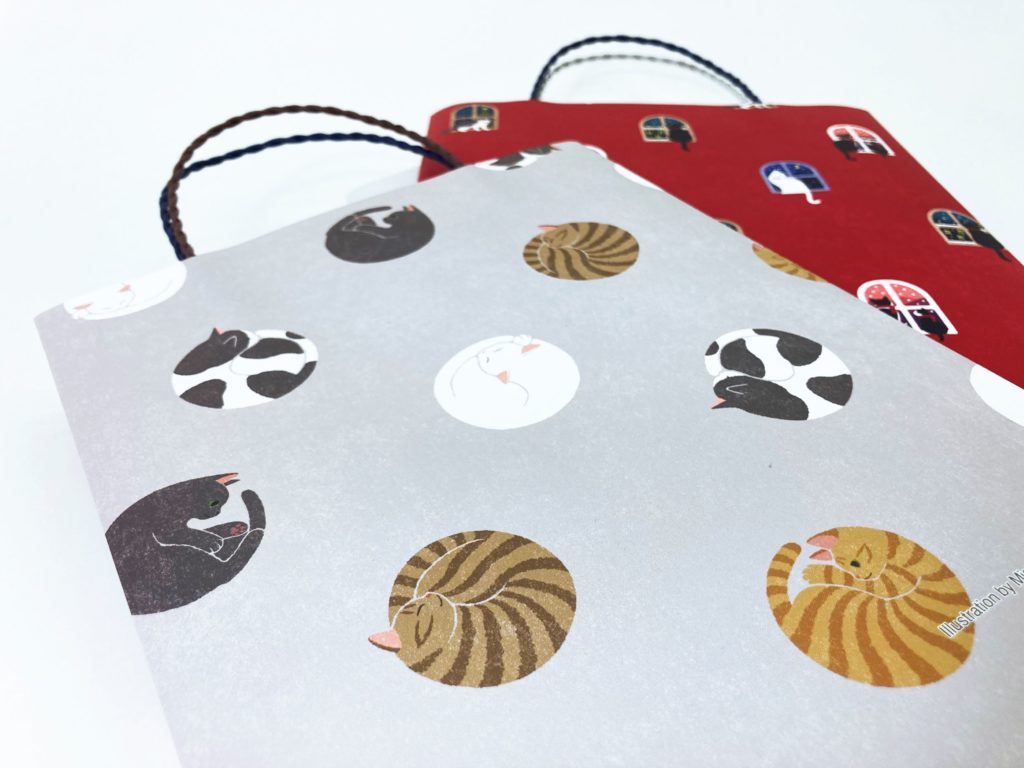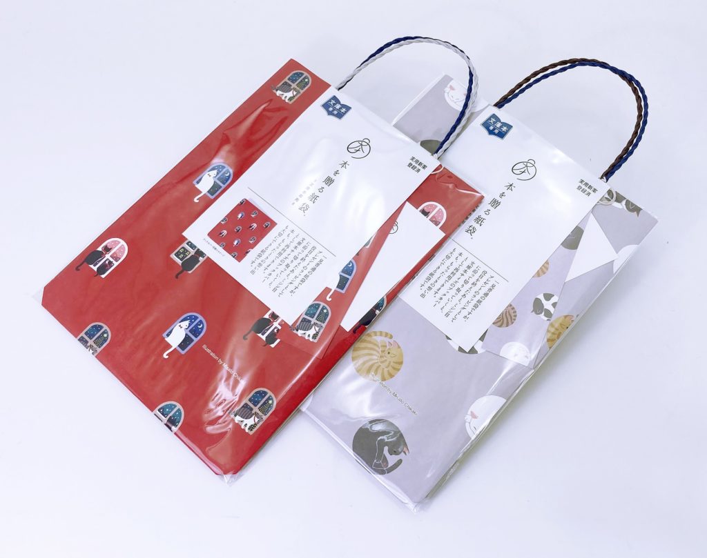 冬の贈り物にぴったり! 本を贈る紙袋【文庫本用】に新作が登場しました。季節感あふれる「クリスマス柄」と、愛らしい「丸猫柄」の2タイプをご用意しています。